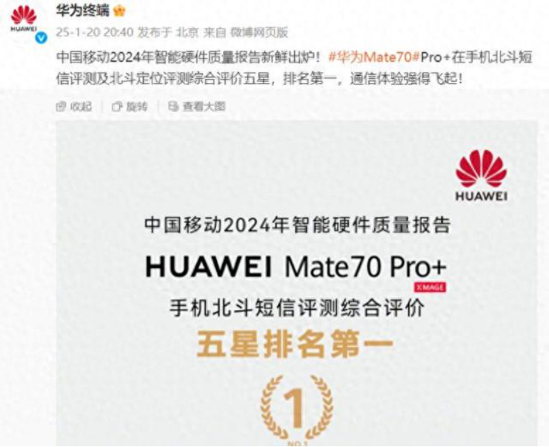 1月20號,據(jù)中國移動2024年智能硬件質(zhì)量報告顯示,華為Mate70 Pro+在北斗短信和北斗定位兩項評測中雙雙拿下了第一名,展現(xiàn)出非常強的技術(shù)和實力。這款搭載雙衛(wèi)星通信技術(shù)的旗艦機,到底有什么過人之處?